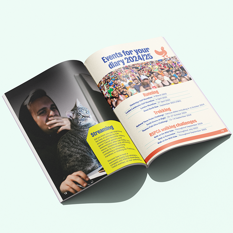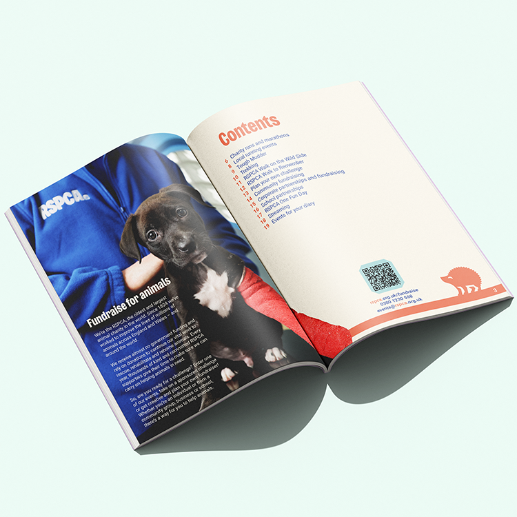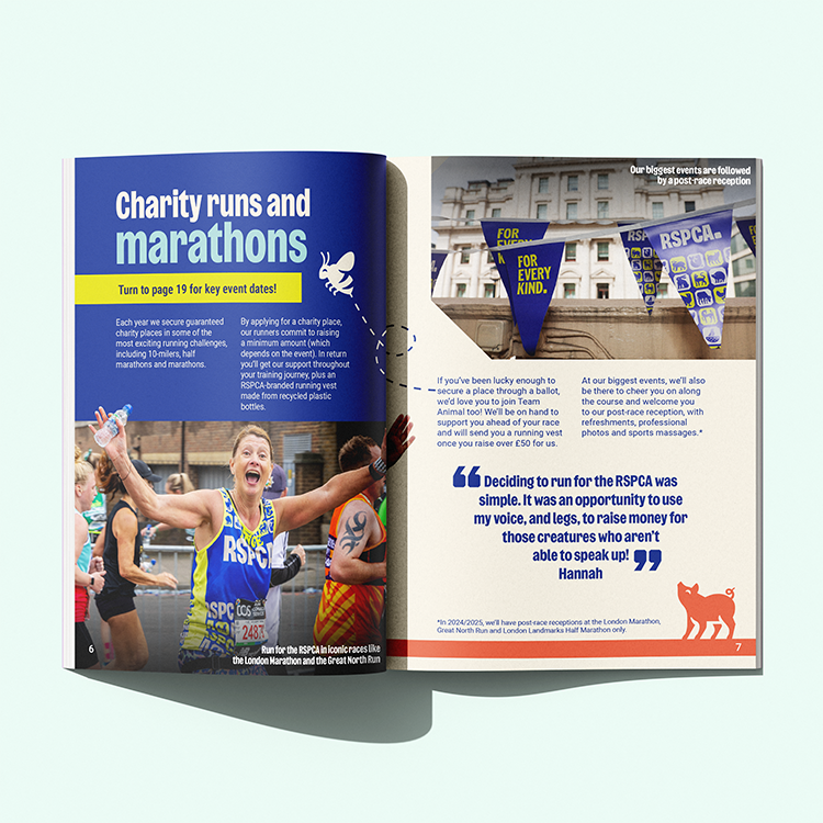 Design an uplifting, approachable fundraising booklet that inspires readers to get involved in the different events while maintaining alignment with RSPCA’s compassionate brand identity.